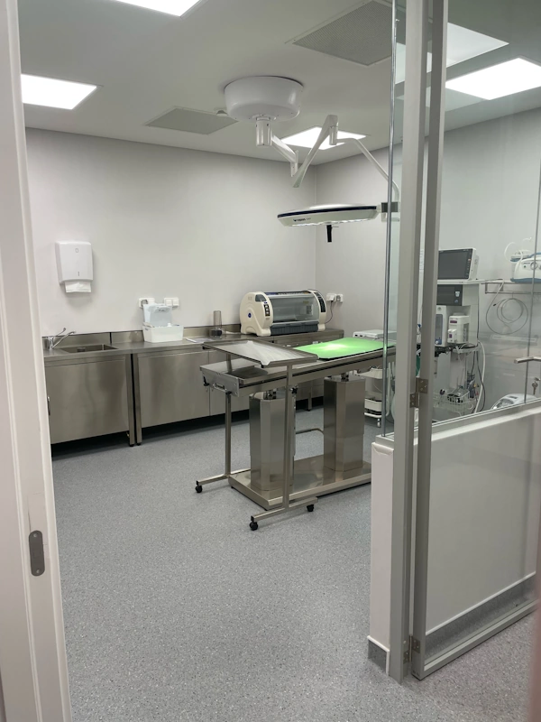 Temos uma sala de cirurgia equipada com a mais recente tecnologia na área da anestesia volátil e monitores que regulam todas as funções vitais do animal durante o procedimento.